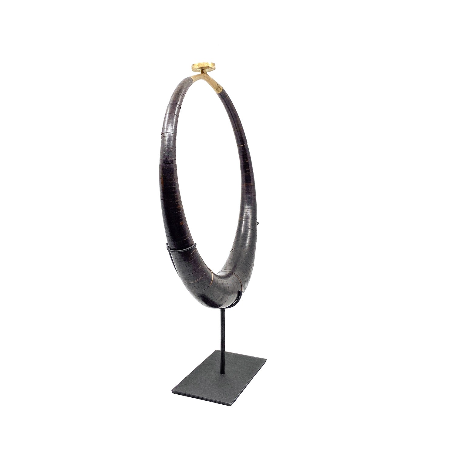 Matière: lamelles de coco polies, laiton et socle en métal
